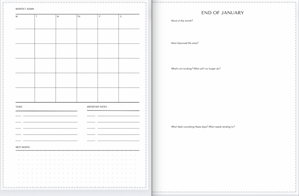 A complete customizable monthly planning template to use for digital or print